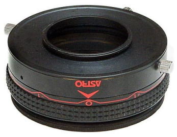| アストロ光学が1990年代に販売していた精密直進ヘリコイドユニット。鏡筒取付部は2インチシュミカセネジ規格。後面はT2(M42/0.75)ネジ規格で、360゜回転可能。ヘリコイド内部にM52フィルターも装着可能。最大ストローク5mm。非常に堅牢かつ滑らかなタッチでフォーカシング操作可能。合焦ピッチが極めて細かいので(回転角72゜で1mm稼働)、特に厳密なピント出しが必要な観測や撮像時に大きな威力を発揮します。終売になって久しい製品ですが、製造元の下請メーカーに残っていた最後の在庫品を笠井がサルベージしました。そのままシュミカセやマクストフカセ等に装着すればヘリコイド付直焦点カメラアダプターとして使用できるのはもちろん、例えば2インチ/SCアダプターを付ければ2インチ差込接眼部用のヘリコイド付直焦点カメラアダプターになり、更にCNC 42mmT2/31.7mmアダプターを追加すれば精密ヘリコイド付2インチ/31.7mm変換アダプターになります。それ以外にも、工夫次第で様々な用途に応用可能でしょう。最大外径72mm、厚み27mm~32mm、重量130g。アストロ光学の正規説明書も付属。元価格は\15,000(1990年代当時)。完全未使用新品状態です。20世紀に製造された純日本製望遠鏡部品の数少ない貴重な遺物を、この好機に是非入手されることを強くお勧めします。 |